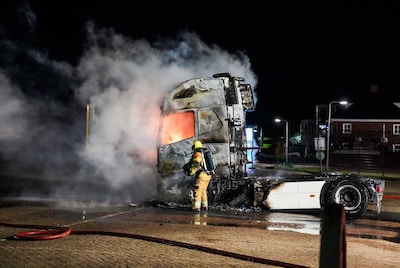 Truckcabine gaat in vlammen op bij transportbedrijf in Heesbeen, brandstichters klimmen over hek