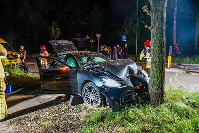 Porsche verwoest bij aanrijding tegen boom: twee gewonden