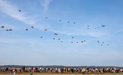 Leden van de Luchtmobiele Brigade en van Parachute Group Holland waagden vandaag boven de Ginkelse Heide de sprong. Ze herdenken daarmee de luchtlandingen in september 1944. Toen sprongen in vijftien minuten tijd bijna 2.000 parachutisten.