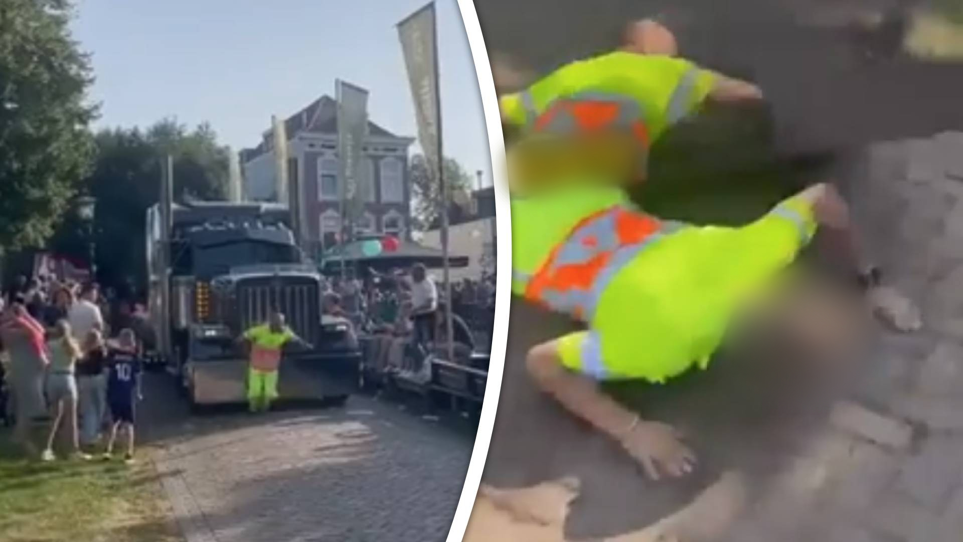 Een verkeersregelaar is onder een truck terecht gekomen tijdens de drukbezochte Vestingdagen in Hellevoetsluis van afgelopen weekend. Dat is te zien op beelden die op sociale media rondgaan. De organisatie van de Vestingdagen laat weten dat het gelukkig goed gaat met de man.