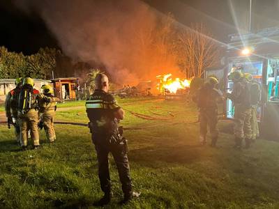 Chalet brandt volledig af op camping in Herpen, vakantiehuisje stort deels in
