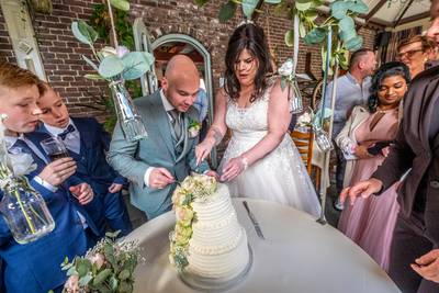 HEUMEN - ,,Het is een belachelijk groot feest, zoals je het anders alleen in een film ziet.” Mariska Peters (36) heeft er amper woorden voor hoe haar trouwdag vrijdag uitpakte. Bij landgoed Bergzicht op de grens van Heumen en Molenhoek gaf ze haar Jordy het jawoord. Daarna zette ze het mes in een enorme taart vol rozen.