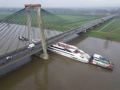 Superjacht Galactica kan wéér niet onder een brug door: ditmaal oponthoud bij Heusden