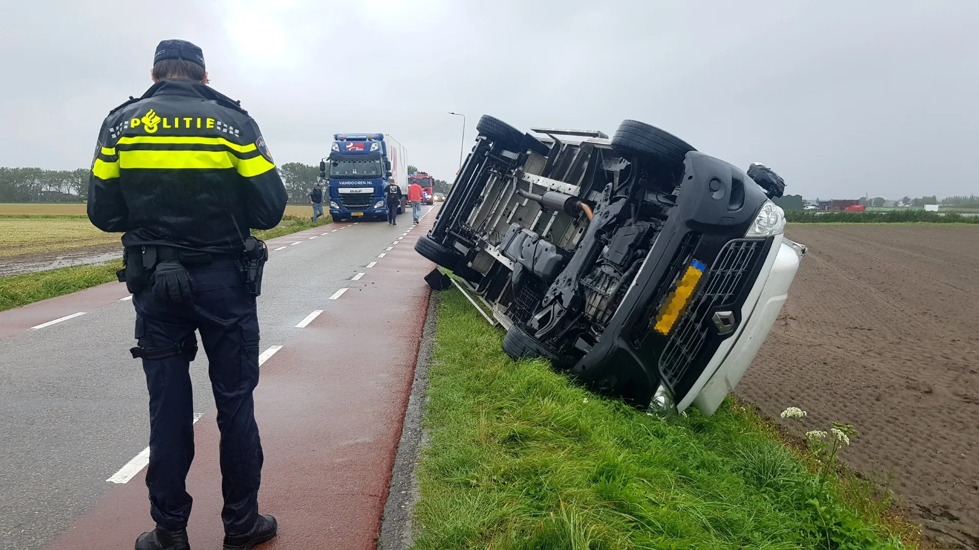 Vrachtwagentje kantelt, chauffeur naar ziekenhuis