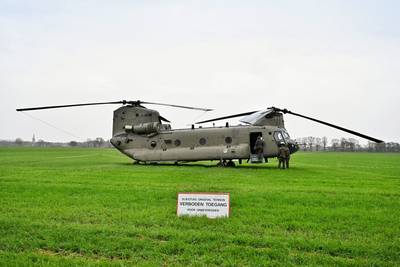 Chinook van jaar oud maakt voorzorgslanding in Hilvarenbeek, Luchtmacht-technici doen onderzoek