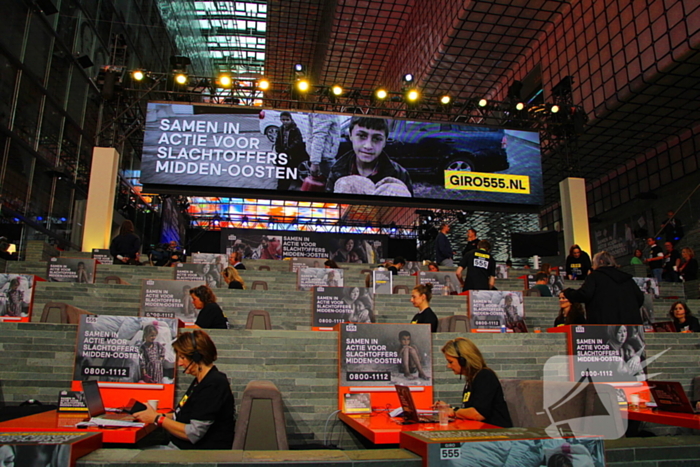 De landelijke actiedag van Giro555 voor de slachtoffers in het Midden-Oosten is van start gegaan. De aftrap vond om 05.55 uur plaats in museum Beeld & Geluid in Hilversum. De teller stond toen op bijna 4,4 miljoen euro.