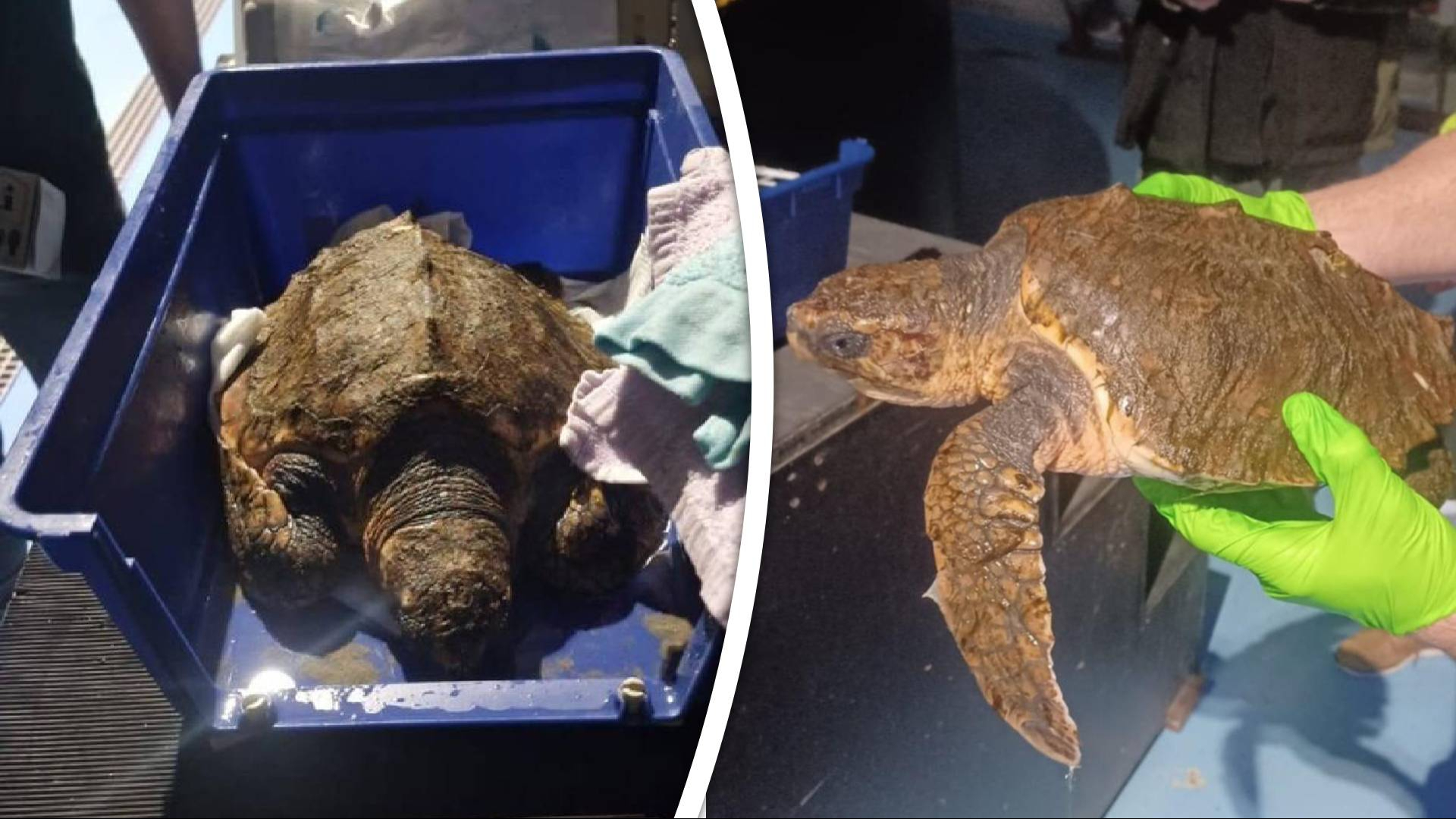 Gewonde zeeschildpad spoelt aan en is nu met kerst in Blijdorp