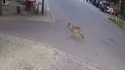KIJK | Wolf wandelt rustig langs ijssalon terwijl tientallen mensen nog een ijsje eten