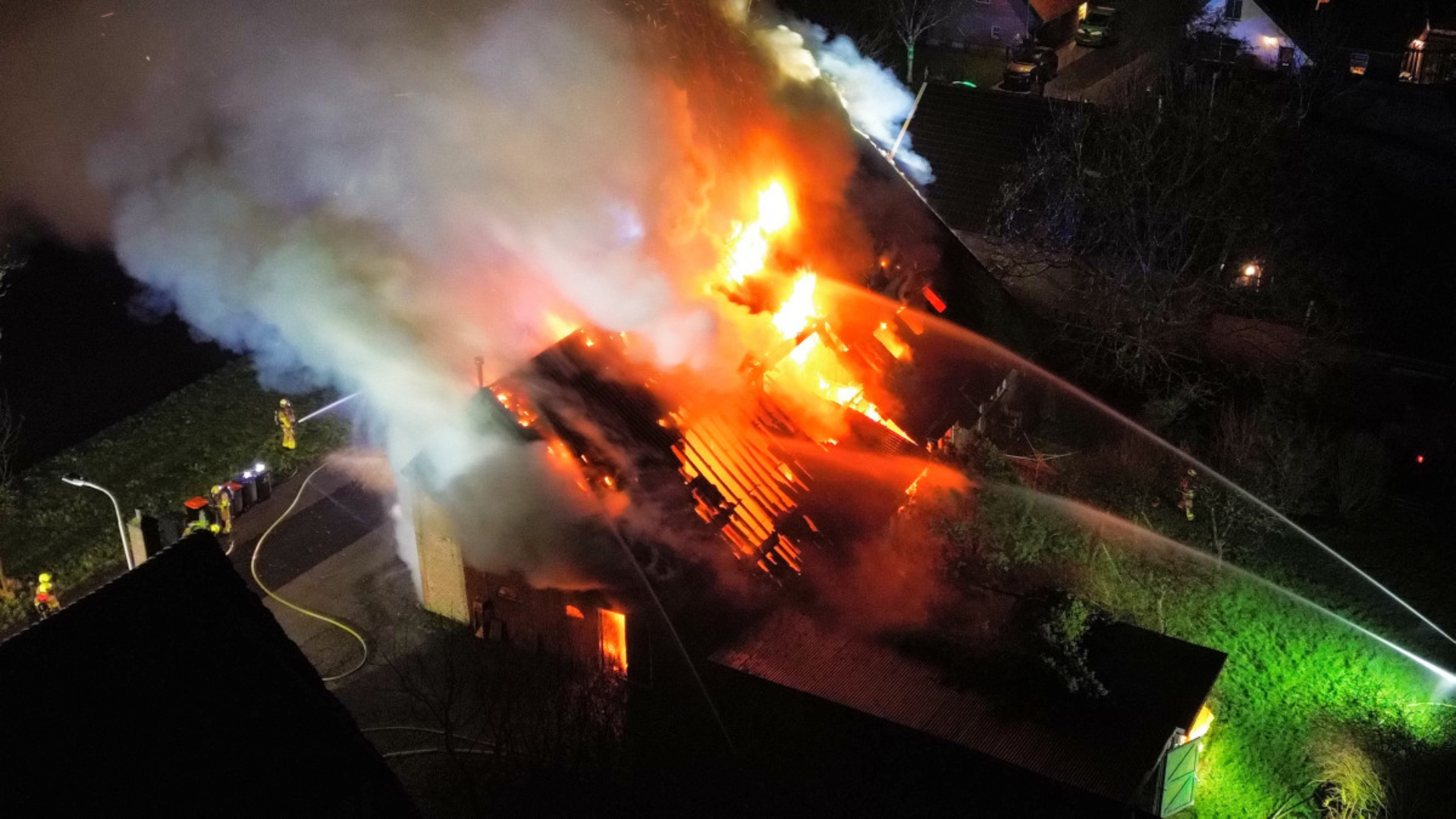 Zeer grote brand in woning en werkplaats