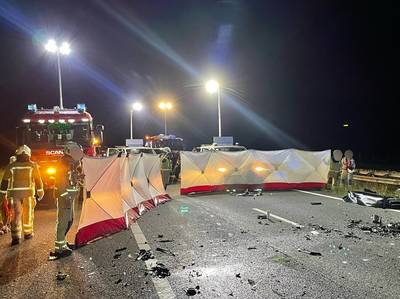 Beelden: hulpdiensten massaal ter plaatse na dodelijk ongeluk door spookrijder