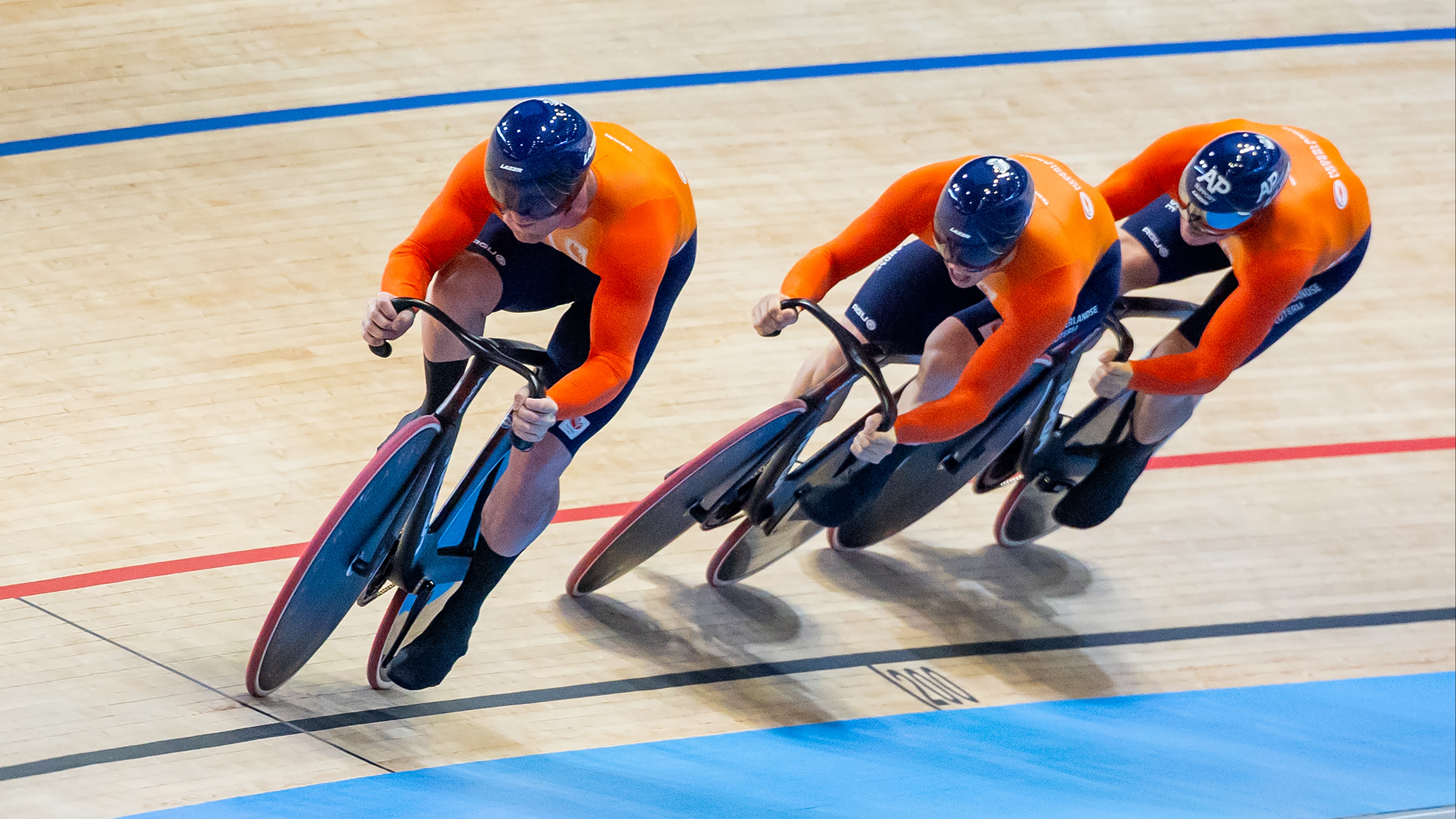 De Nederlandse baanwielrenners hebben hun status opnieuw volledig waargemaakt. Roy van den Berg, Harrie Lavreysen en Jeffrey Hoogland verpulverden in het Deense Ballerup de concurrentie en reden onbedreigd naar het goud. In de finale was het Oranje-trio te snel voor het team van Australië: 42,046 tegen 42,673.