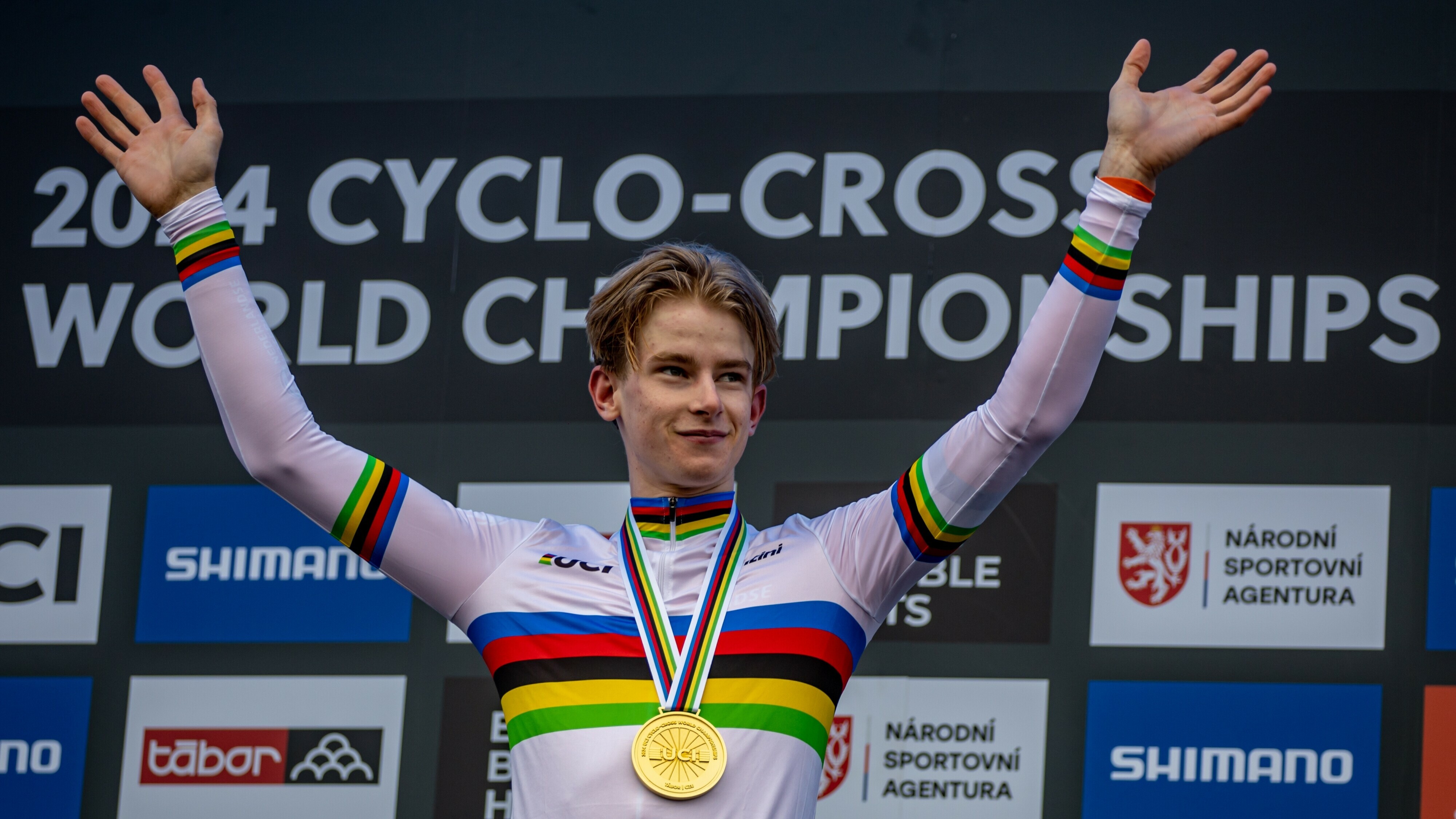 zaterdag 21 december 2024, 19:44 uurDrentse winnaars in de beloften-categorie tijdens de wereldbeker veldrijden in Hulst. Tibor Del Grosso uit Eelde pakte de winst, David Haverdings uit Zuidlaren maakte het podium compleet.