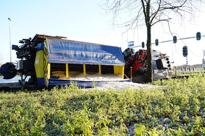 Zelfs voor strooiwagens is het vrijdagochtend te glad. Op de Burgemeester Ballingsweg in Hulten gleed een strooiwagen uit de bocht door een spekgladde weg. De wagen kwam op zijn kant terecht en botste tegen een hek.