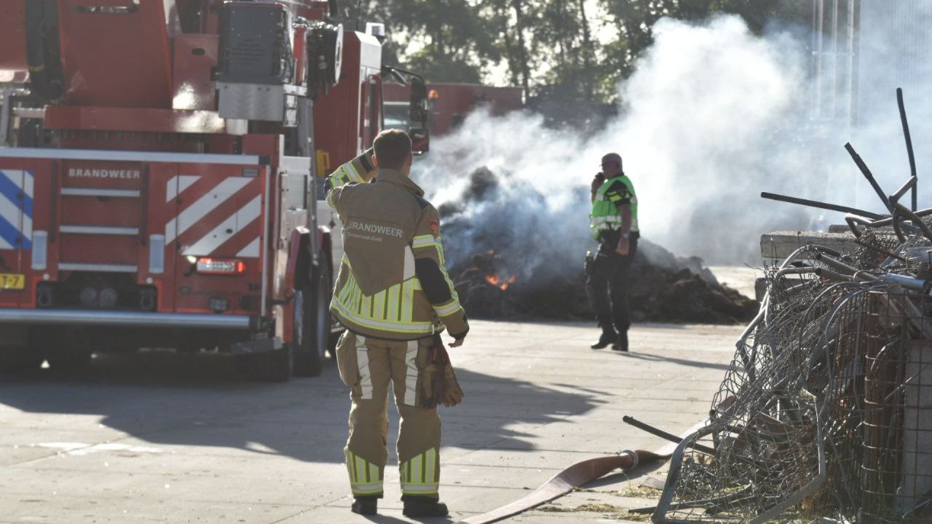 Berg stro vliegt in de brand in Hurwenen, brandweer rukt groots uit