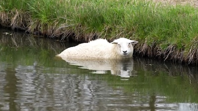 Schaap belandt in het water in Kaatsheuvel