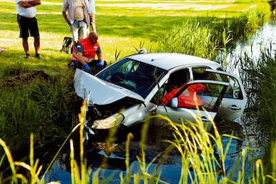 Oudere vrouw naar het ziekenhuis nadat ze met auto in sloot belandt