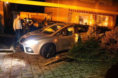 Auto crasht in voortuin in Kampen en rijdt boom omver