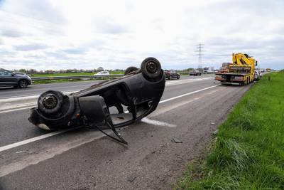 Auto belandt op de kop bij ongeval A15