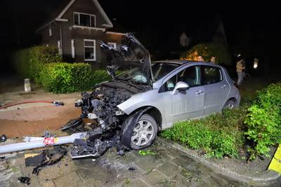 Man verliest macht over het stuur en rijdt lantaarnpaal omver, auto vliegt in brand