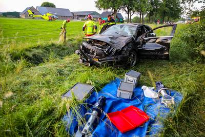 Auto slaat over de kop en crasht in sloot; drie gewonden, van wie twee ernstig