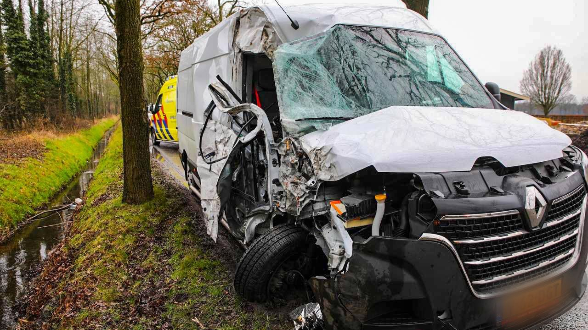 Bestelbus knalt op boom in Klarenbeek, bestuurder reed vermoedelijk onder invloed