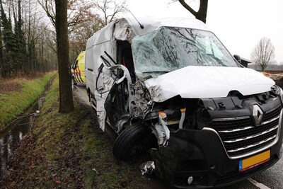 Bestelbus ramt boom, bestuurder raakt gewond