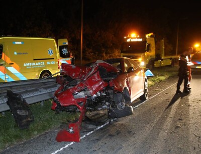 Enorme ravage op A50 nadat auto tegen vangrail klapt, chauffeur naar ziekenhuis
