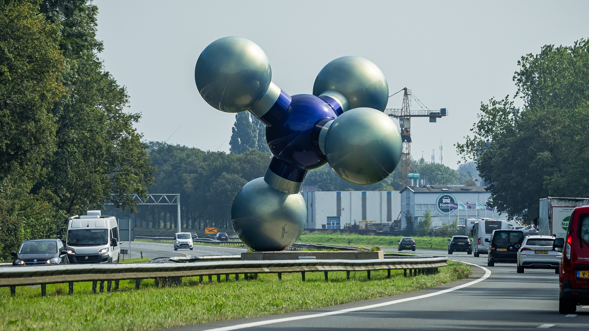 Het beeld ‘Het Slochter Molecule’, ook wel bekend als het gasmolecuul, in de middenberm van de A7 bij Kolham wordt enkele honderden meters verplaatst naar een locatie in de berm aan de noordkant van de snelweg.