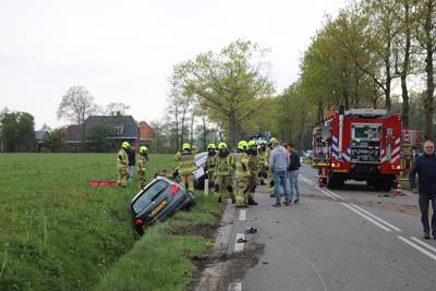 Inhaalmanoeuvre gaat fout, auto’s belanden in de sloot