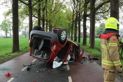 Auto slaat over de kop bij eenzijdig ongeval bij Laren