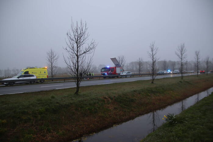 Auto raakt van de weg en rijdt boom omver bij Leeuwarden, bestuurder gewond naar het ziekenhuis