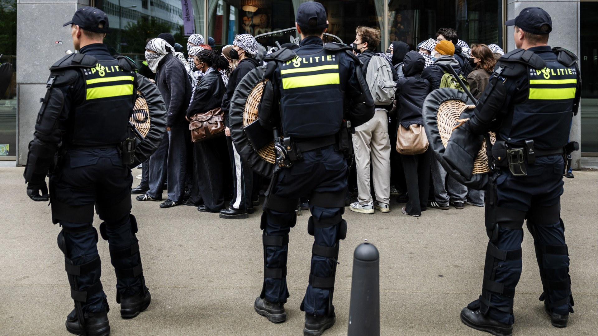 Meerdere betogers aangehouden bij onrustig pro-Palestinaprotest Universiteit Leiden