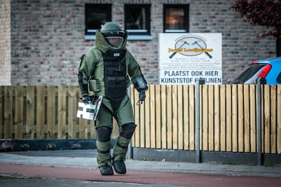 De politie onderzoekt een mogelijk explosief dat is aangetroffen aan de Kamp 43 in Lelystad. De straat is compleet afgezet en brandweerwagens en ambulances staan om de hoek te wachten. De Explosieven Opruimingsdienst (EOD) onderzoekt een verdacht voorwerp.