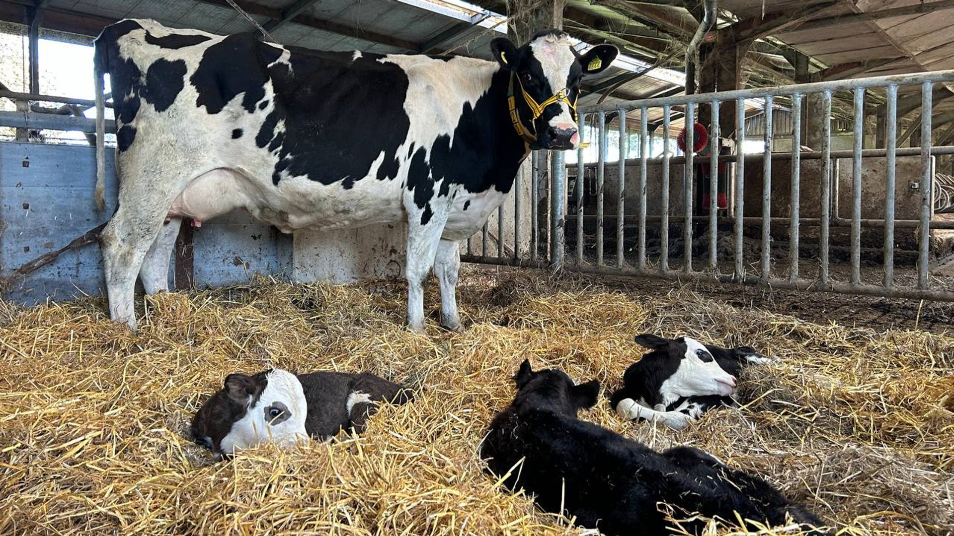 dinsdag 5 november 2024, 18:01 uurHij moest zich even in de ogen wrijven, melkveehouder Kenn te Riele uit Lettele. Toen hij gisteravond de stal verliet had koe Wilhelmina namelijk twee mooie kalfjes gekregen. Maar vanochtend lag er nóg eentje in het stro. Een drieling dus. En dat komt niet heel vaak voor bij koeien.