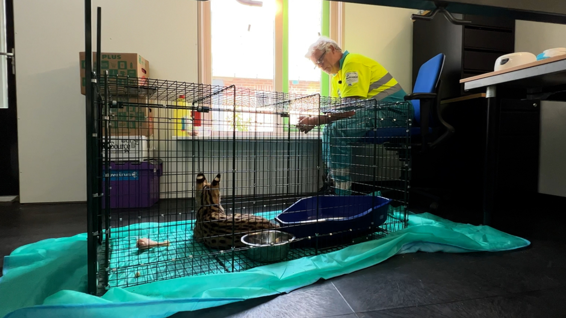 maandag 22 juli 2024, 18:45 uurDe serval die zaterdag in Lexmond ontsnapte was pas nét bij haar nieuwe baasje. Na twee dagen ging het al mis, het dier viel aan en ontsnapte.