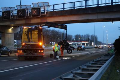 Motorrijder raakt gewond bij invoegen op A2, Rijkswaterstaat schrobt olie van weg