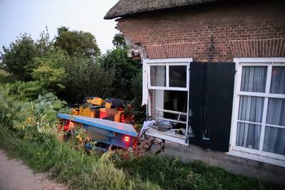 De bewoners van een vrijstaande woning aan de Rijndijk in Lienden zijn zich dinsdagavond rot geschrokken. Een shovel met aanhanger raakte van de weg en ramde een deel van de woning eruit, met een grote ravage tot gevolg.
