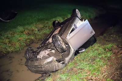Automobilist belandt op de kop in de sloot
