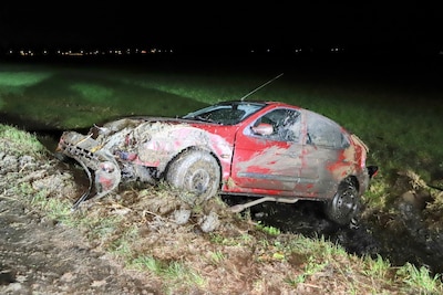 Auto belandt in de sloot in Lienden, inzittenden proberen vuurwerk te verstoppen in weiland