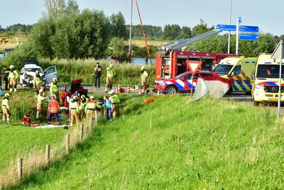Drie gewonden bij flinke botsing in Lithoijen, één auto belandt op zijkant in greppel