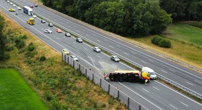 112 Nieuws: Vrachtwagen vol asfaltdelen gekanteld; A1 tussen Bathmen en Lochem voorlopig dicht