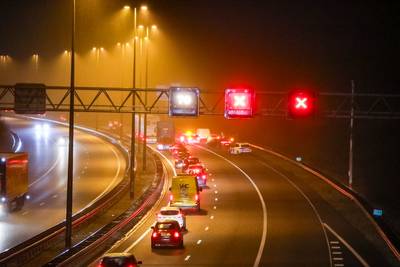 Snelwegloper kruipt door oog van de naald op A50