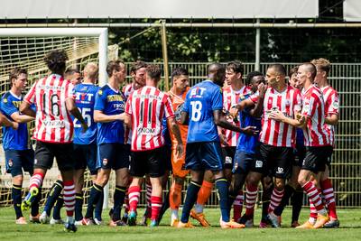 woensdag 20 juli 2022, 18:36 uurWat een vriendschappelijk duel tussen Willem II en Sparta had moeten worden, is woensdagmiddag ontaard in opstootjes tussen spelers. Scheidsrechter Robin Vereijken floot om die reden al na 83 minuten af. Sparta stond op het moment van affluiten met 2-0 voor in Loon op Zand door doelpunten van Arno Verschueren en Sven Mijnans.Volgens het AD sloeg de vlam in de pan nadat aanvoerder Adil Auassar van Sparta zijn tegenstander Justin Mathieu bij de keel greep.