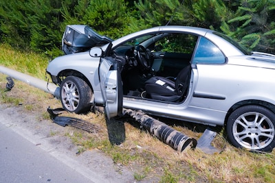 Automobilist valt in slaap en rijdt lantaarnpaal uit de grond