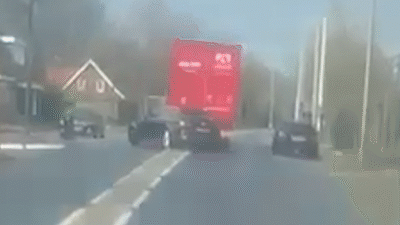Bizarre beelden: vrachtwagen sleept personenauto mee – ‘Knapte iets in zijn hoofd’