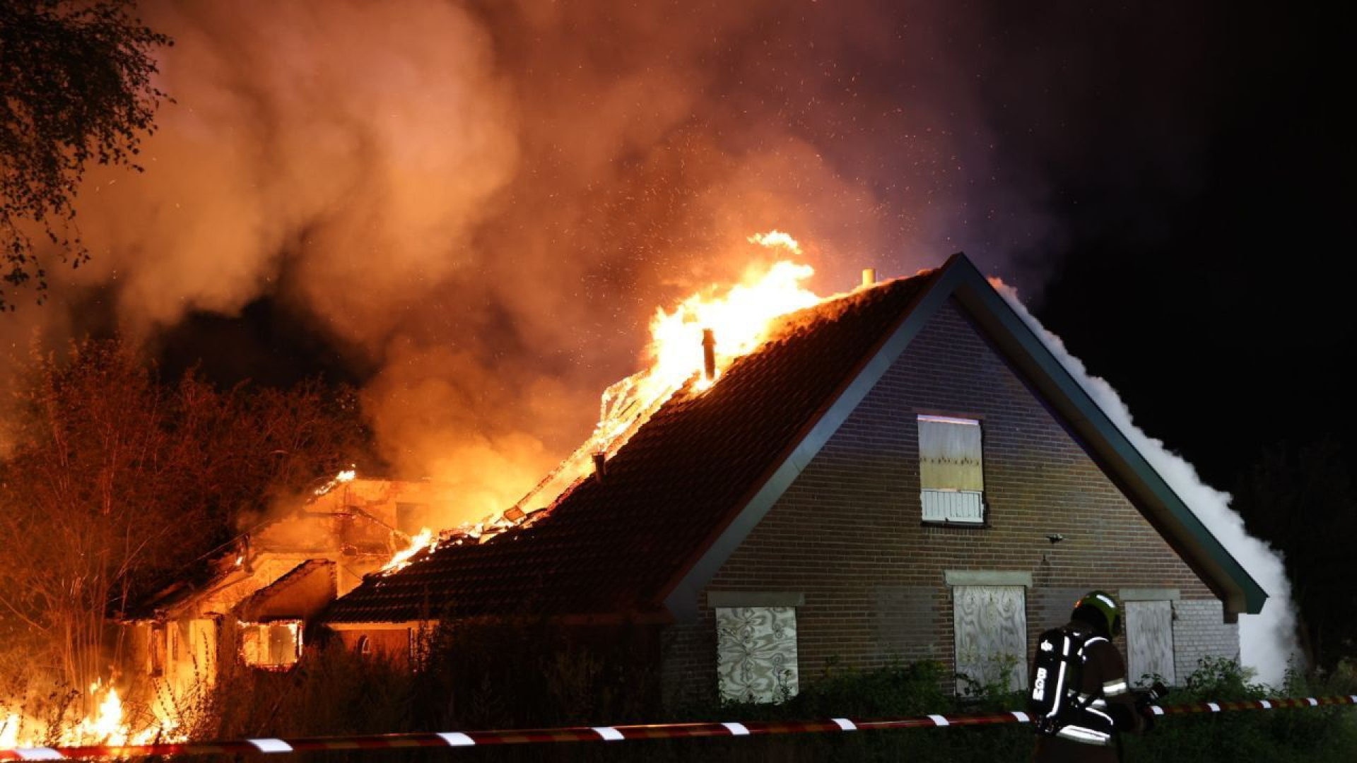Grote uitslaande brand legt leegstaande boerderij in de as
