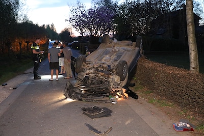 Op de Broeksteeg in Lunteren is een auto met vier inzittenden over de kop geslagen en midden op de weg tot stilstand gekomen. Naar verluidt is de automobilist gevlucht.