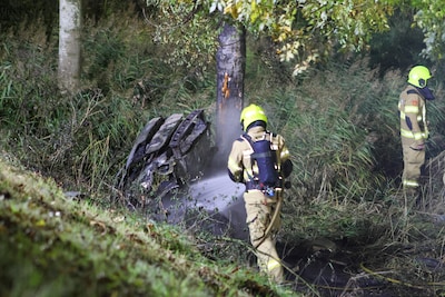 maandag 20 oktober 2025, 23:20 uurEen automobilist is maandagavond van de weg geraakt in Lunteren. De auto rolde naar beneden en botste tegen een boom, brak in tweeën en vloog in brand. Hoe de bestuurder er aan toe is, is onbekend.