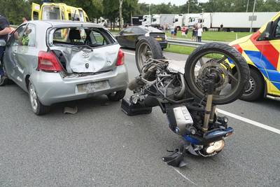 Motorrijder botst achterop auto en is zwaargewond naar ziekenhuis gebracht