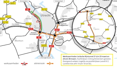 vrijdag 21 maart 2025, 10:51 uurRijkswaterstaat sluit vanaf 21 maart een aantal weekenden de hoofdrijbaan van de A2 tussen knooppunt Oudenrijn en Maarssen af. Het asfalt is versleten en voldoet niet aan de geluidsnorm. Tijdens de afsluiting kan de parallelbaan wel worden gebruikt.